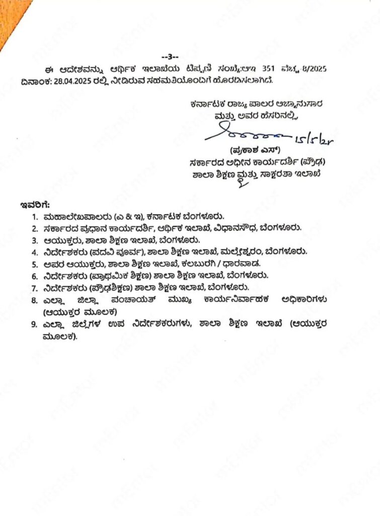 ಈ ಆದೇಶವನ್ನು ಆರ್ಥಿಕ ಇಲಾಖೆಯ ಟಿಪ್ಪಣಿ ಸಂಖ್ಯೆ:ಆಇ 351 ವೆಚ್ಚ-8/2025 ದಿನಾಂಕ: 28.04.2025 ರಲ್ಲಿ ನೀಡಿರುವ ಸಹಮತಿಯೊಂದಿಗೆ ಹೊರಡಿಸಲಾಗಿದೆ.