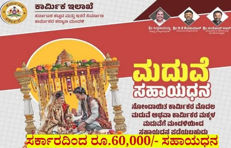 ರ್ಮಿಕರ ಮಕ್ಕಳ ಮದುವೆಗೆ ರಾಜ್ಯ ಸರ್ಕಾರ 60,000 ಸಹಾಯಧನ.