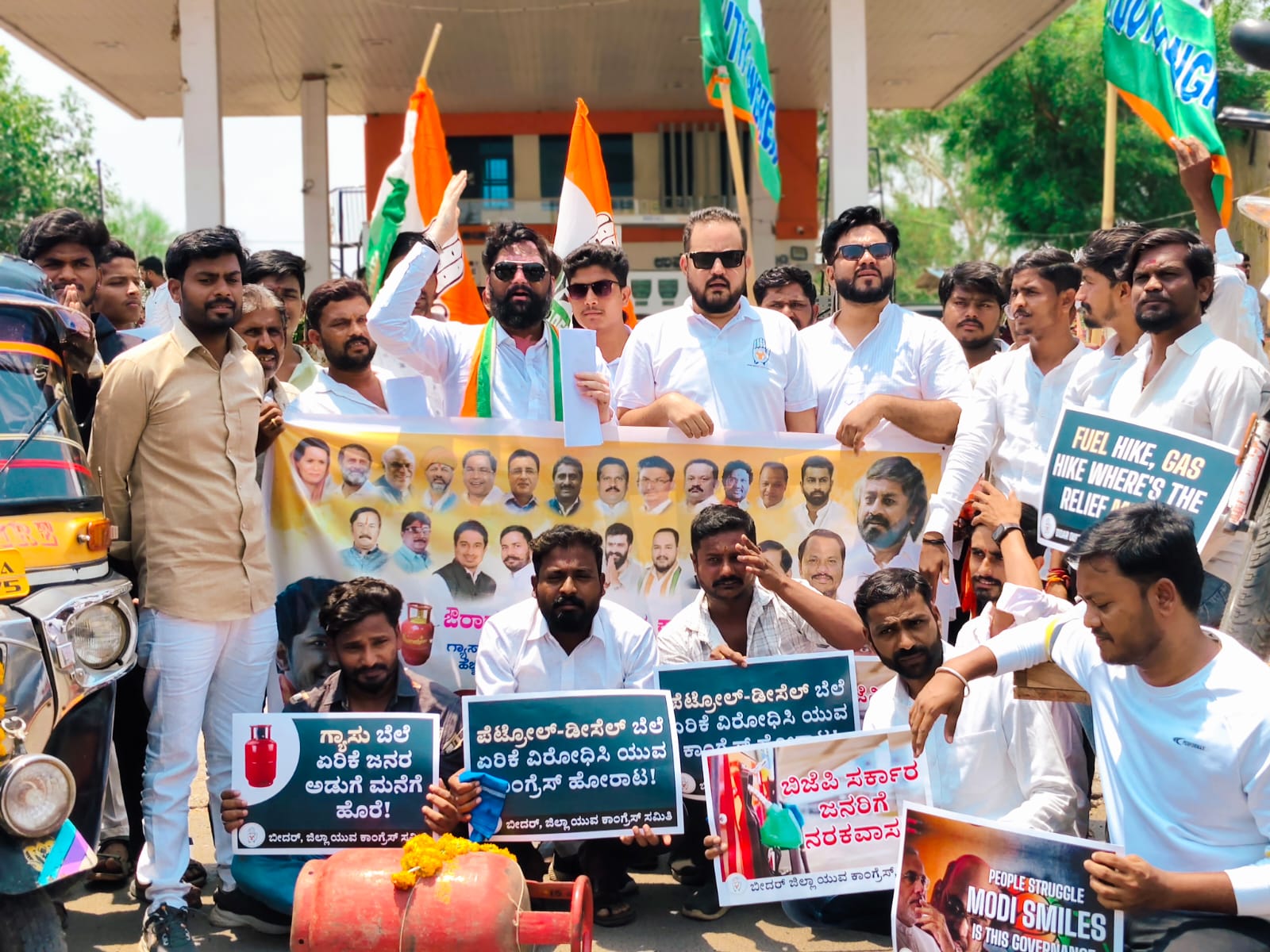 ಕೇಂದ್ರ ಬಿಜೆಪಿ ಸರ್ಕಾರದ ಬೆಲೆ ಏರಿಕೆ ಖಂಡಿಸಿದ ತಾಲೂಕಾ ಕಾಂಗ್ರೆಸ್ ಯುವಾ ಮುಖಂಡರು