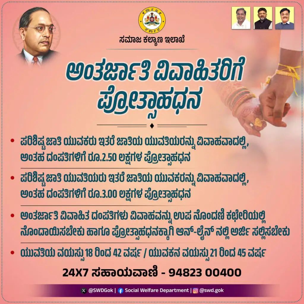 ಅಂತರ್ಜಾತಿ ವಿವಾಹಕ್ಕೆ ಸರ್ಕಾರದಿಂದ ಪ್ರೋತ್ಸಾಹಧನ ಅರ್ಜಿ ಸಲ್ಲಿಕೆ ಪ್ರಕ್ರಿಯೆ ಆರಂಭ