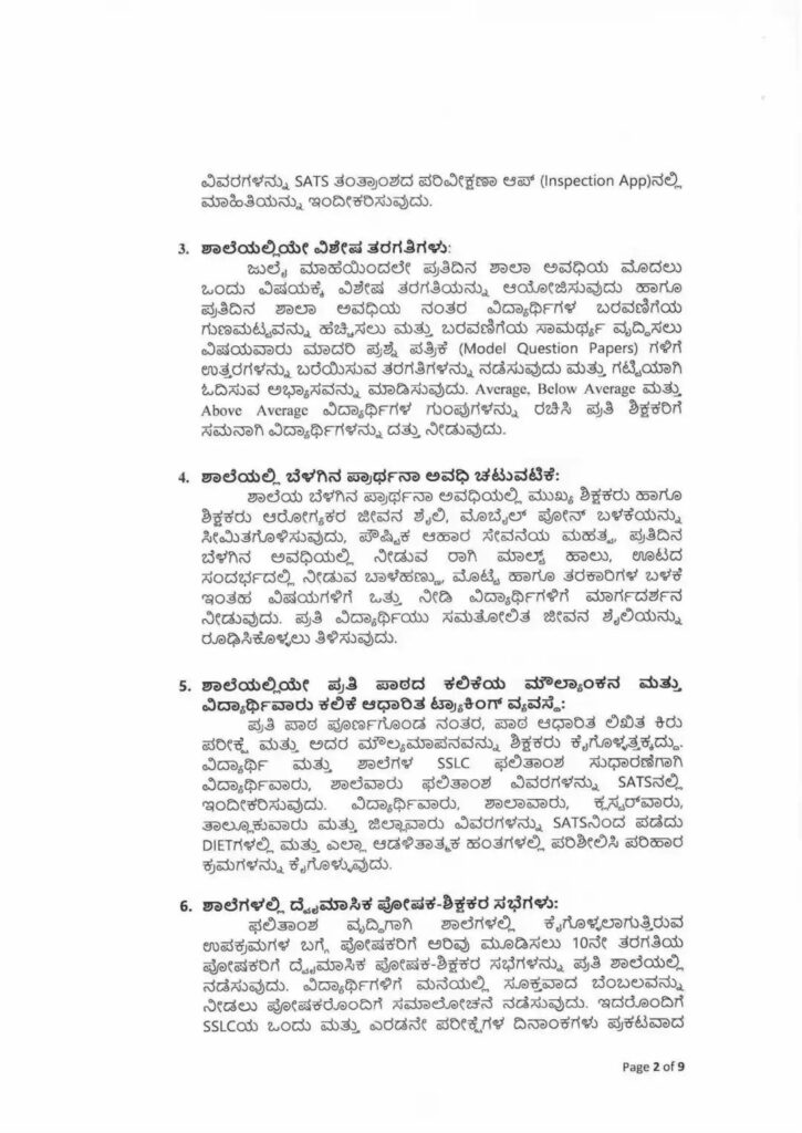 ಬೆಂಗಳೂರು: 2025-26ನೇ ಸಾಲಿನ ಎಸ್‌ಎಸ್‌ಎಲ್‍ಸಿ ಪರೀಕ್ಷೆಯ ಫಲಿತಾಂಶವನ್ನು ವೃದ್ಧಿಸುವುದು ಶಾಲಾ ಶಿಕ್ಷಣ ಇಲಾಖೆ ಮಹತ್ವದ ಕ್ರಮ ವಹಿಸಿದೆ. ಇದನ್ನು ಸಾಧಿಸುವ ಹಿನ್ನೆಲೆಯಲ್ಲಿ ಎಲ್ಲಾ ಶಾಲೆಗಳಲ್ಲಿ ಅನುಸರಿಸಬೇಕಾದ ವಿವಿಧ ಕ್ರಮಗಳ ಬಗ್ಗೆ ಸುತ್ತೋಲೆ ಹೊರಡಿಸಿದೆ.