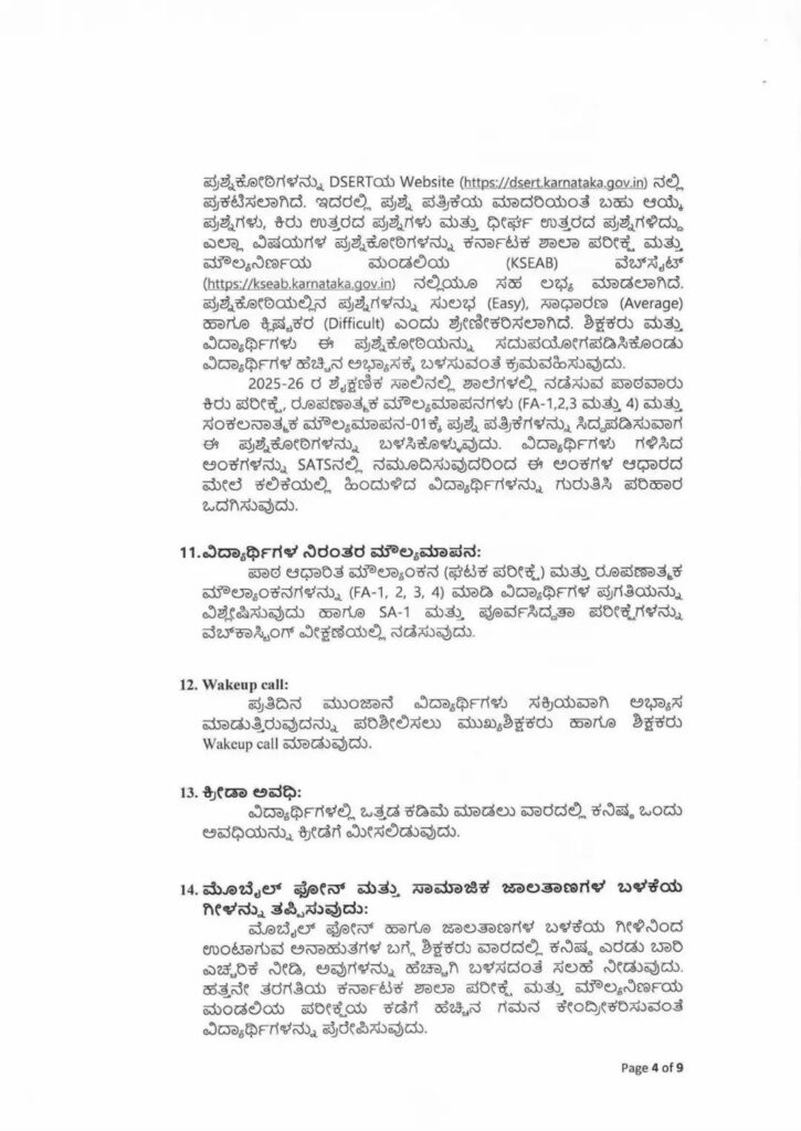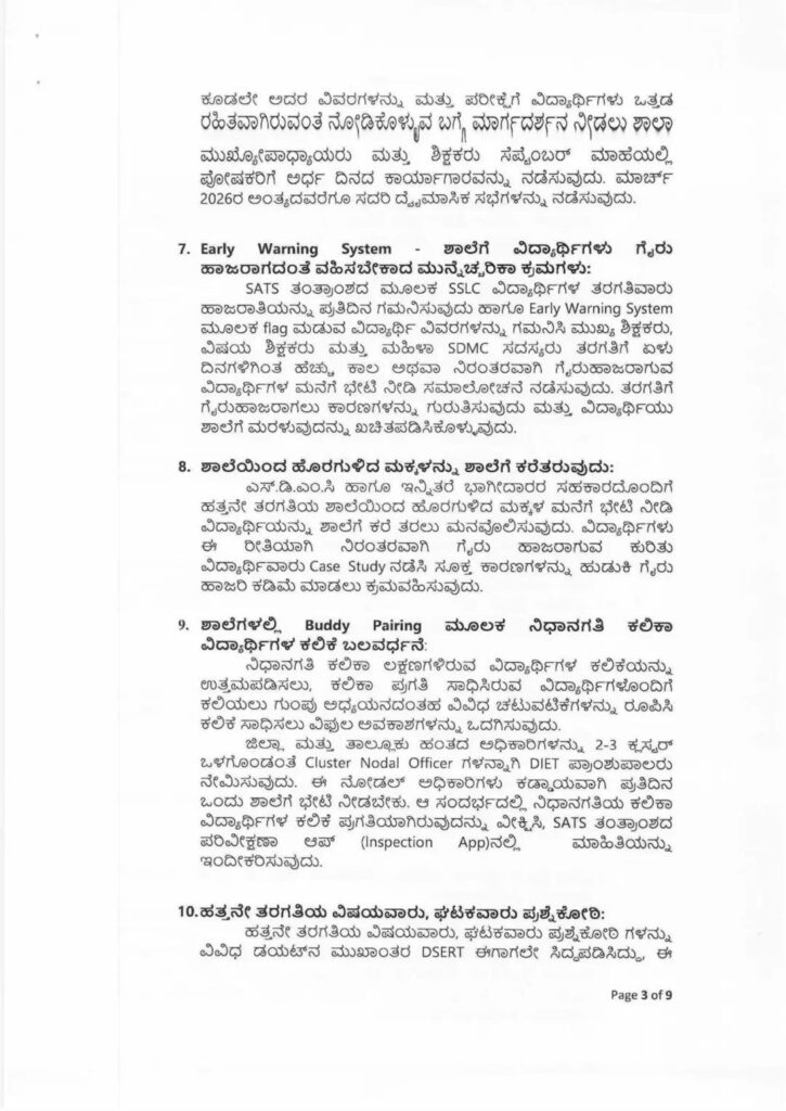 1. ಡಿಸೆಂಬರ್-2025 ರ ಅಂತ್ಯದೊಳಗೆ ಪಠ್ಯಕ್ರಮ ಪೂರ್ಣಗೊಳಿಸುವಿಕೆ: ಎಸ್.ಎಸ್.ಎಲ್.ಸಿ ವಾರ್ಷಿಕ ಪರೀಕ್ಷೆಯ ಪಠ್ಯವಸ್ತುವನ್ನು ಶೈಕ್ಷಣಿಕ ವಾರ್ಷಿಕ ಮಾರ್ಗಸೂಚಿಯಂತೆ ಡಿಸೆಂಬರ್-2025 ರ ಅಂತ್ಯದೊಳಗೆ ಪೂರ್ಣಗೊಳಿಸಲು ಕ್ರಮವಹಿಸುವುದು.